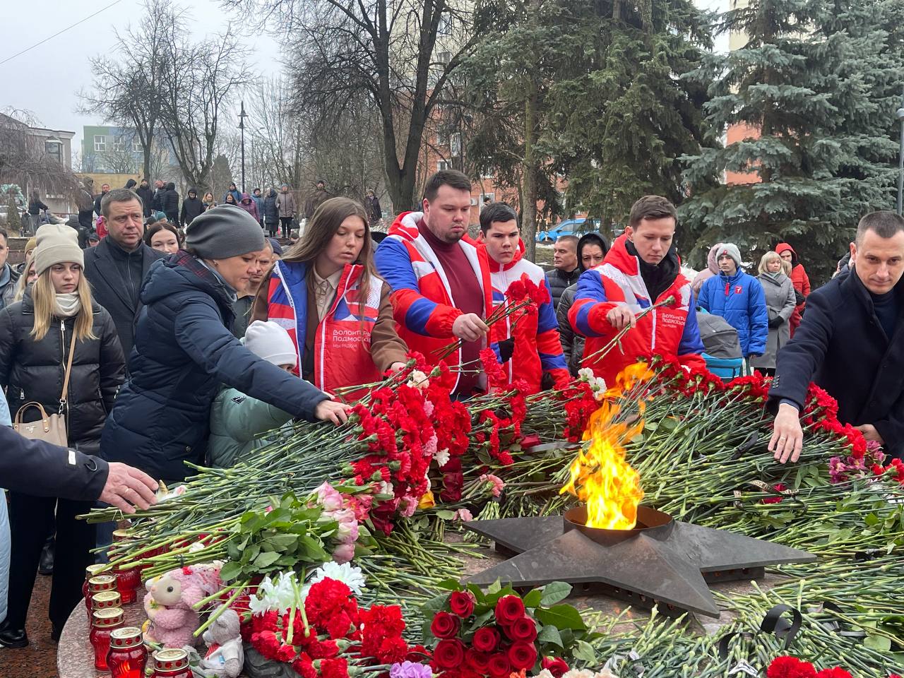 24.03.2024 В День общенационального траура студенты Московского регионального социально-экономического института приняли участие в возложение цветов к Вечному огню на Аллее Славы в городе Видное.