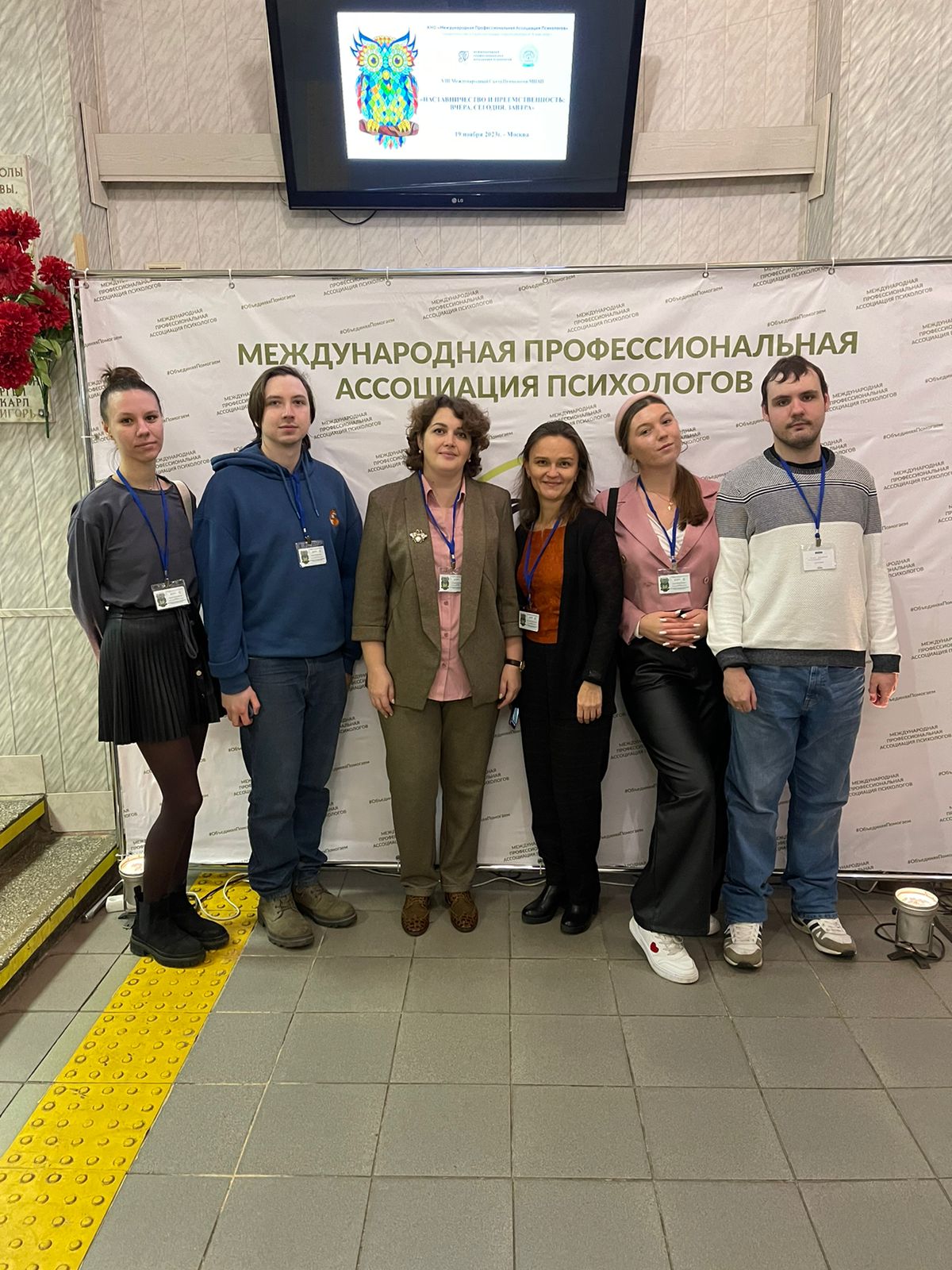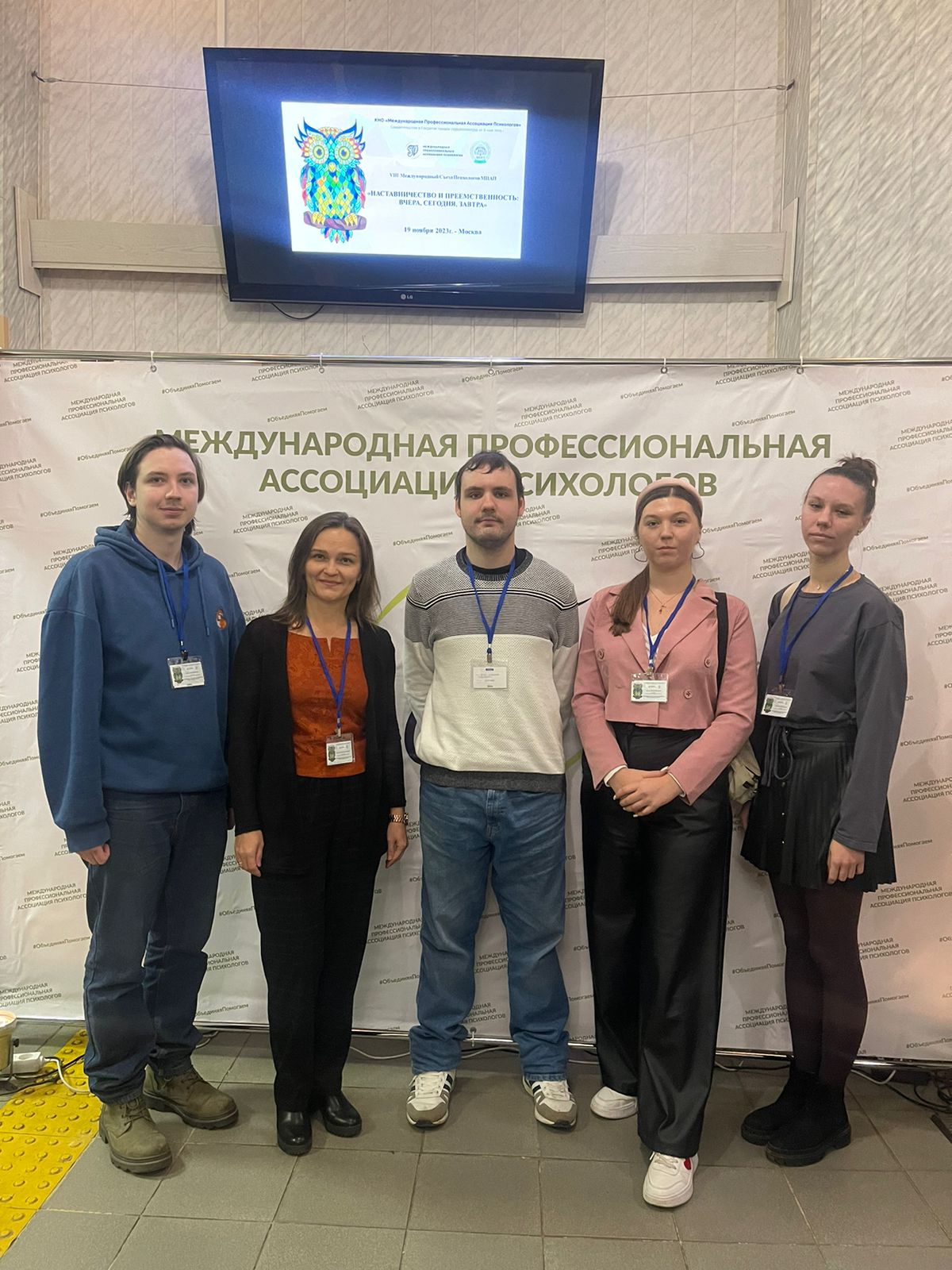 19.11.2023 Сегодня студенты-психологи МРСЭИ Валентин Цехан, Полина Булгакова, Валерия Борейко, Егор Удодов и Денис Жидяев вместе с психологом Центра психологических инноваций и старшим преподавателем кафедры педагогики и психологии Храмовой Татьяной Константиновной принимают участие в VIII Съезде Международной профессиональной ассоциации психологов. Ежегодное главное мероприятие МПАП посвящено Году педагога и наставника. Выступления и мастер-классы проводятся в тематике "Наставничество и преемственность: вчера, сегодня, завтра". Встреча проводится в Московском педагогическом государственном университете.