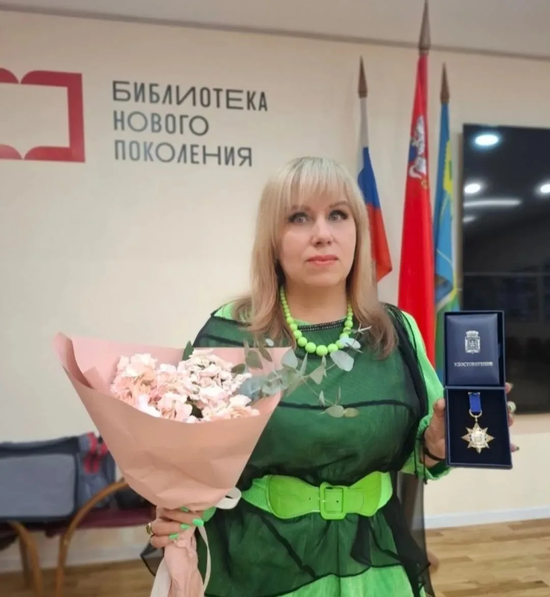 Руководитель литературного клуба "Другие грани", член Союза писателей России Татьяна Николаевна Буланкина была награждена знаком главы Ленинского городского округа