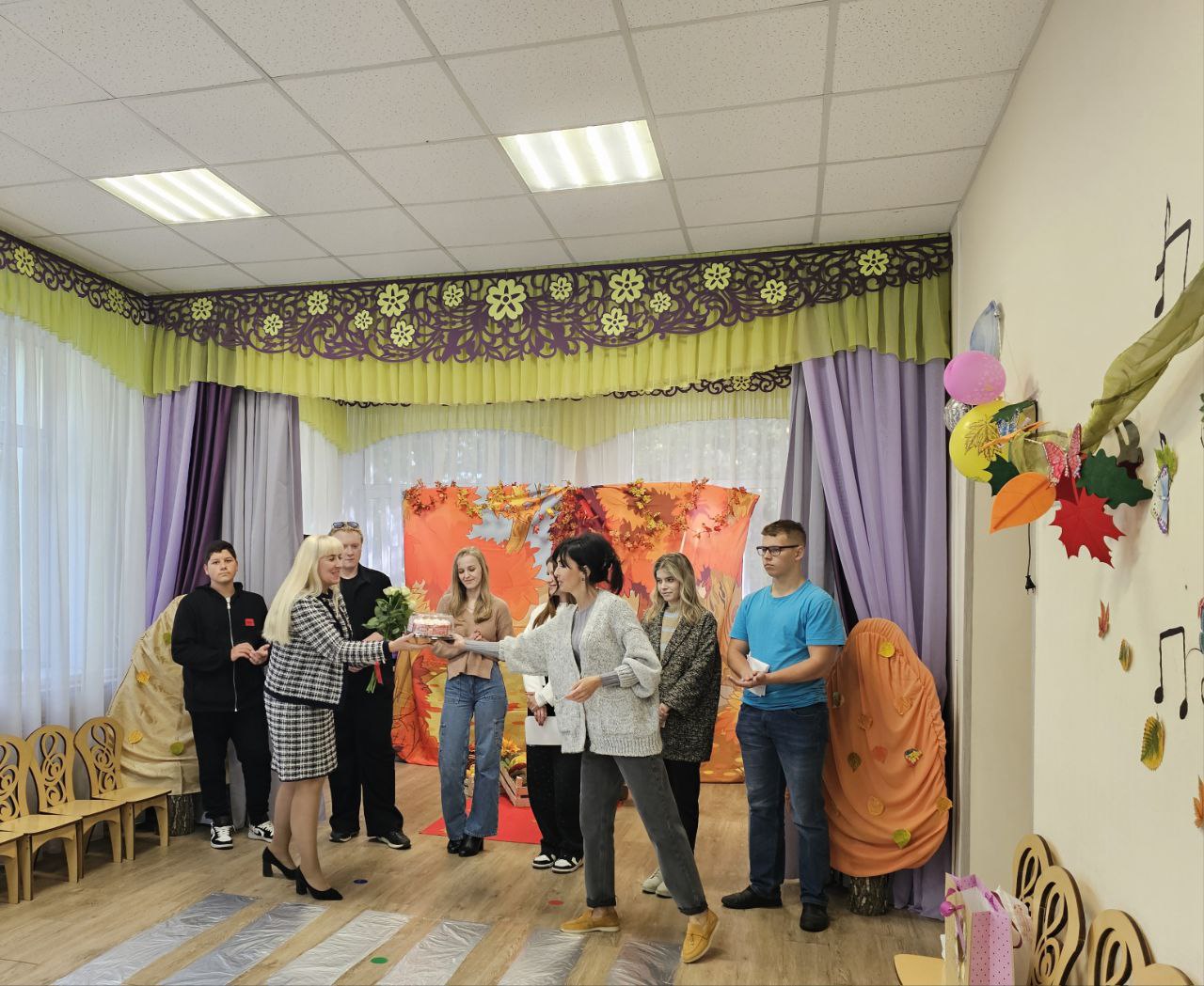 Студенты МРСЭИ подготовили поздравления для сотрудников дошкольного отделения для детей с ОВЗ "Видновская СОШ 5" с УИОП - сделали открытки своими руками, сочинили стихи и купили цветы и